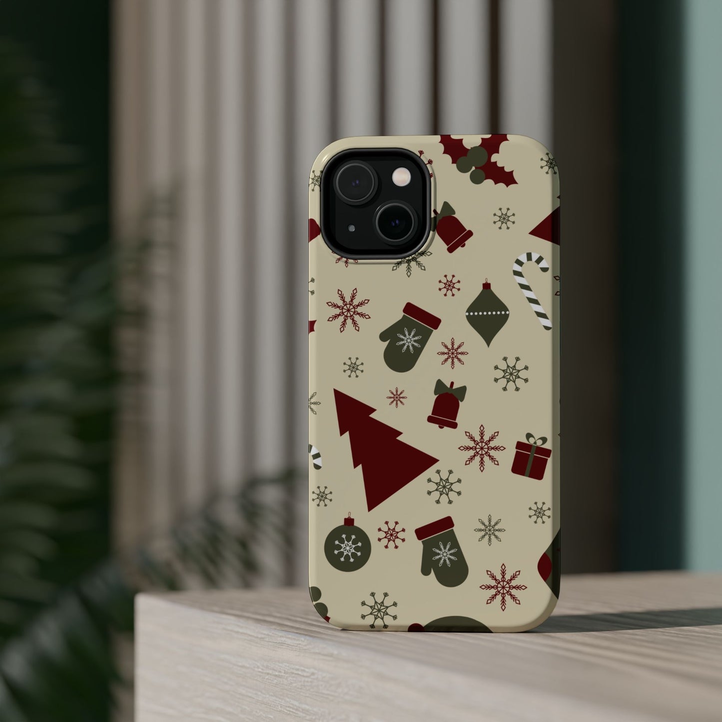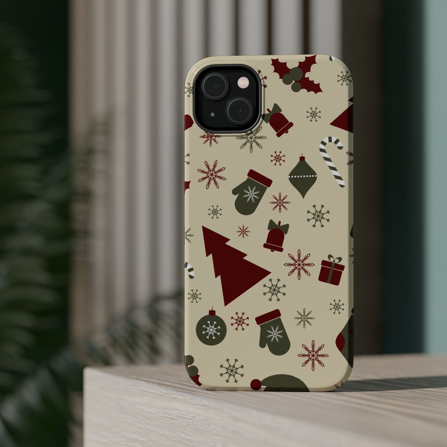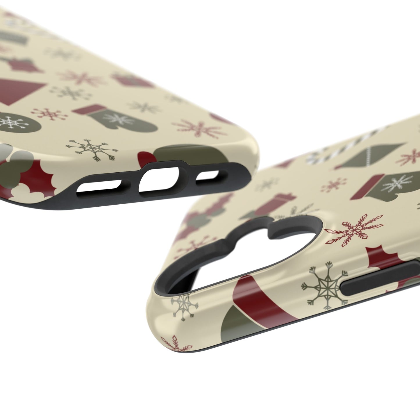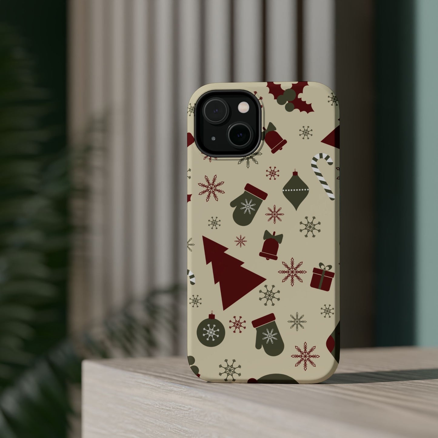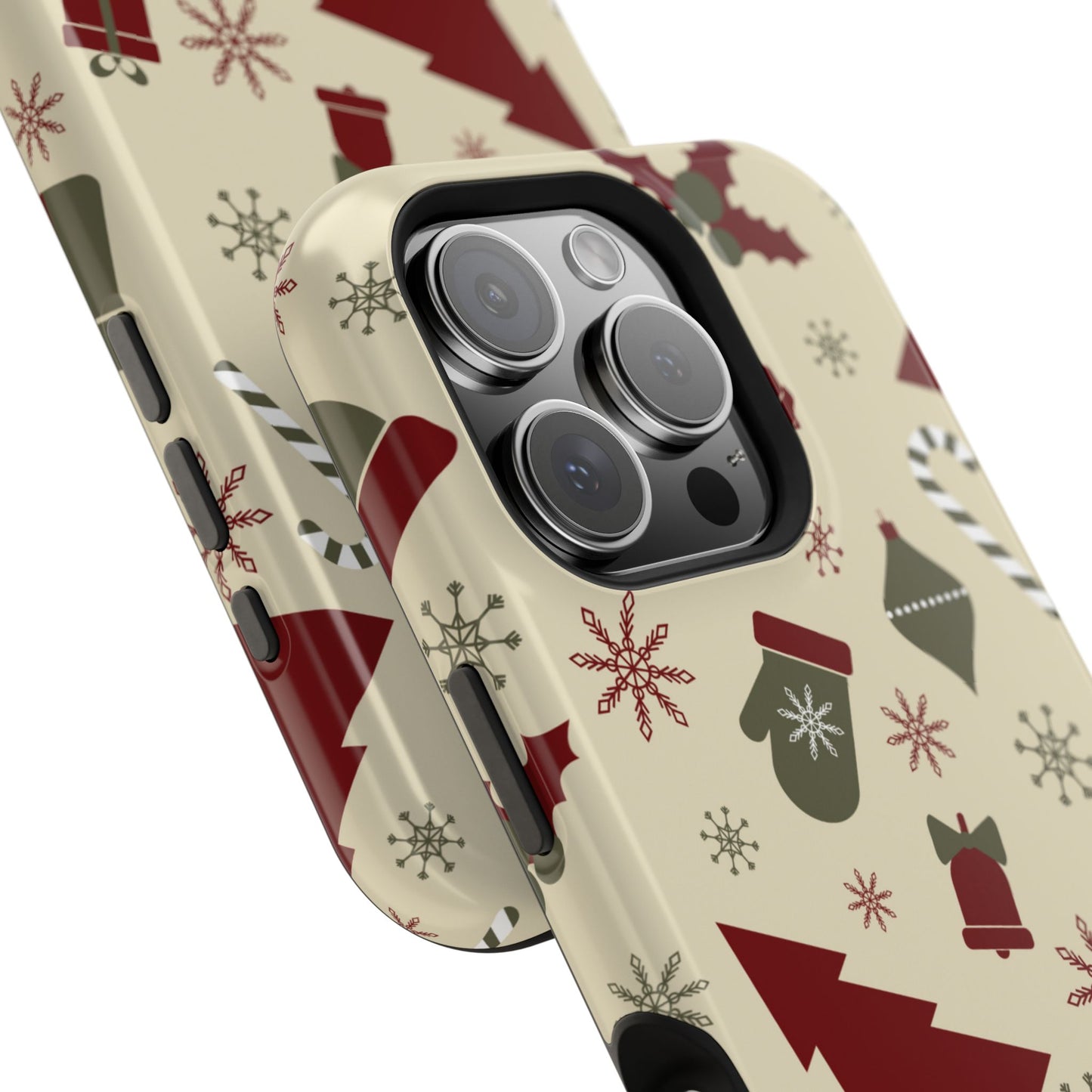 Embrace the spirit of the season with our Vintage Holiday Cheer MagSafe iPhone Case! This charming design showcases festive icons in classic red, green, and cream tones, including snowflakes, Christmas trees, candy canes, and gift boxes, all set on a warm, beige background. Perfect for adding a touch of retro holiday style to your phone, this case brings nostalgic holiday vibes wherever you go. Crafted from durable materials, it provides reliable protection against everyday bumps and scratches while keeping your phone lightweight and sleek. Celebrate the holidays in style with this festive, functional case!