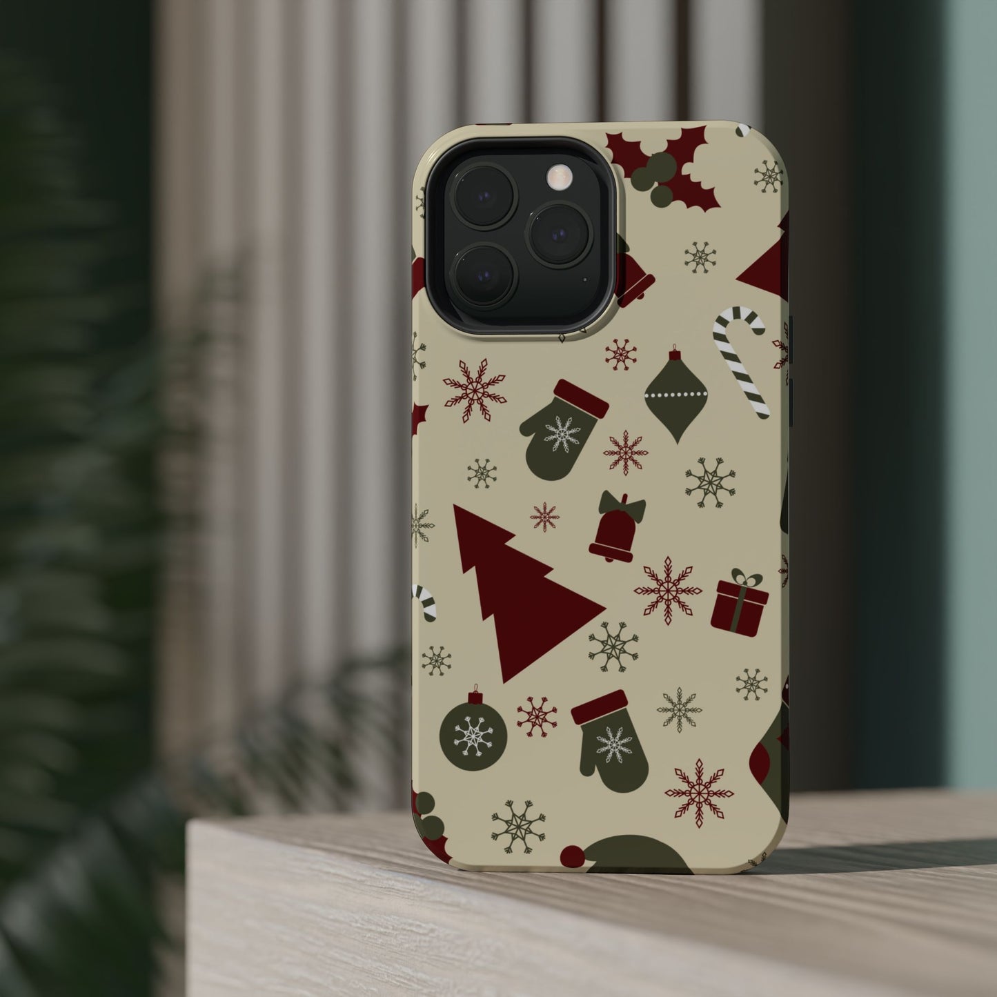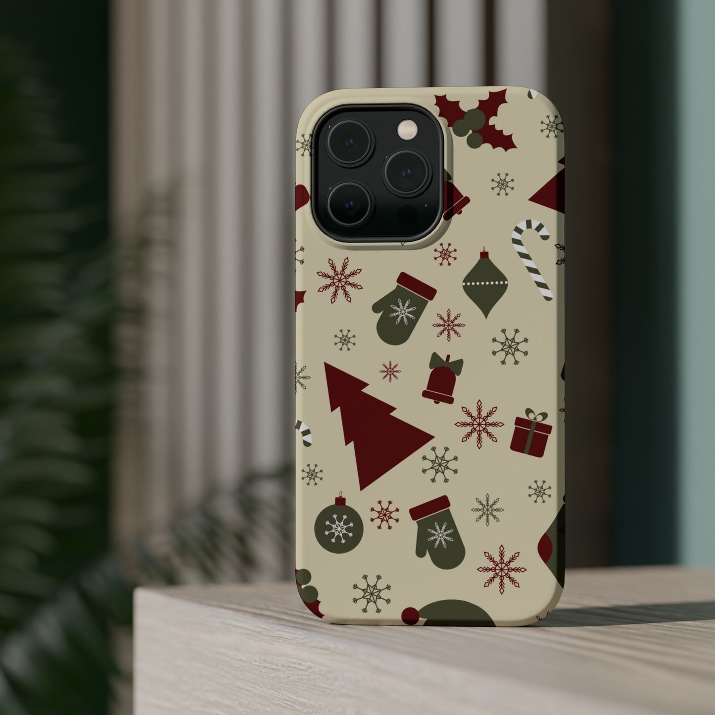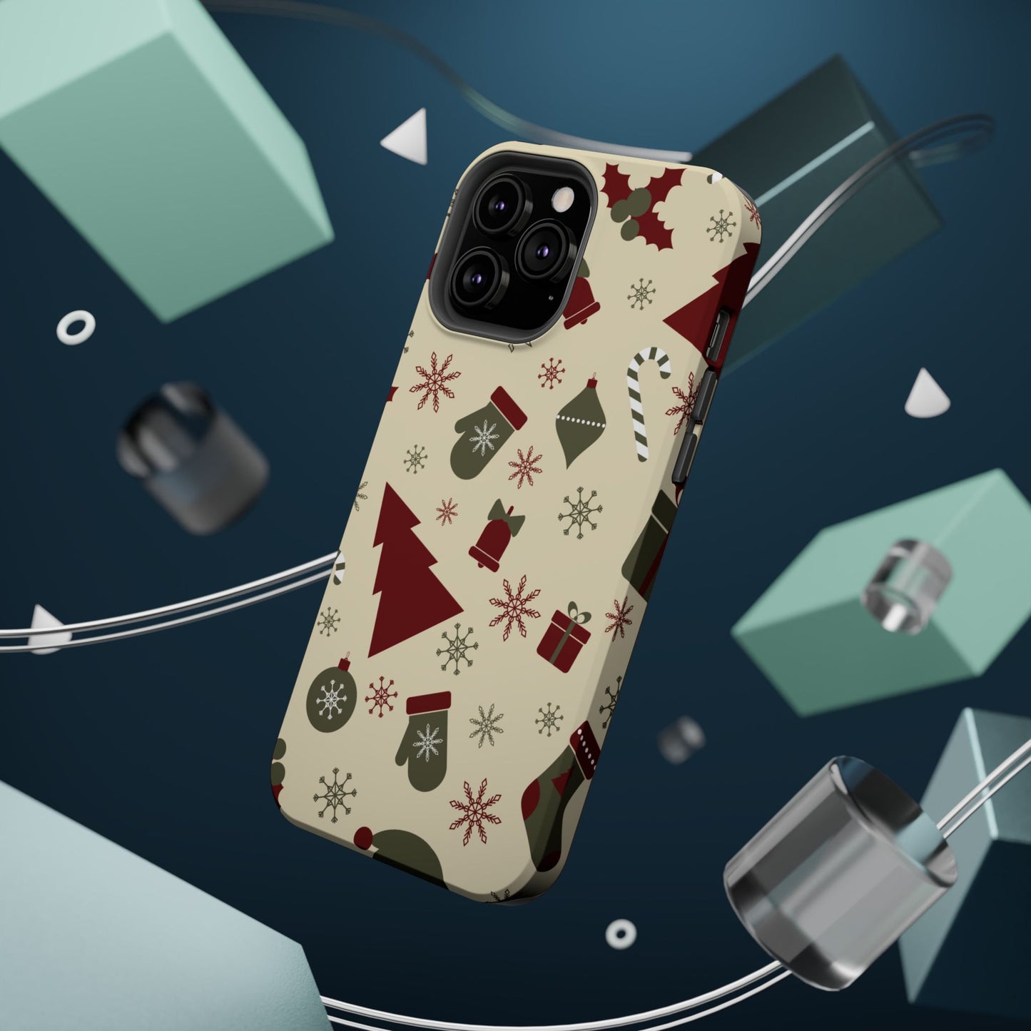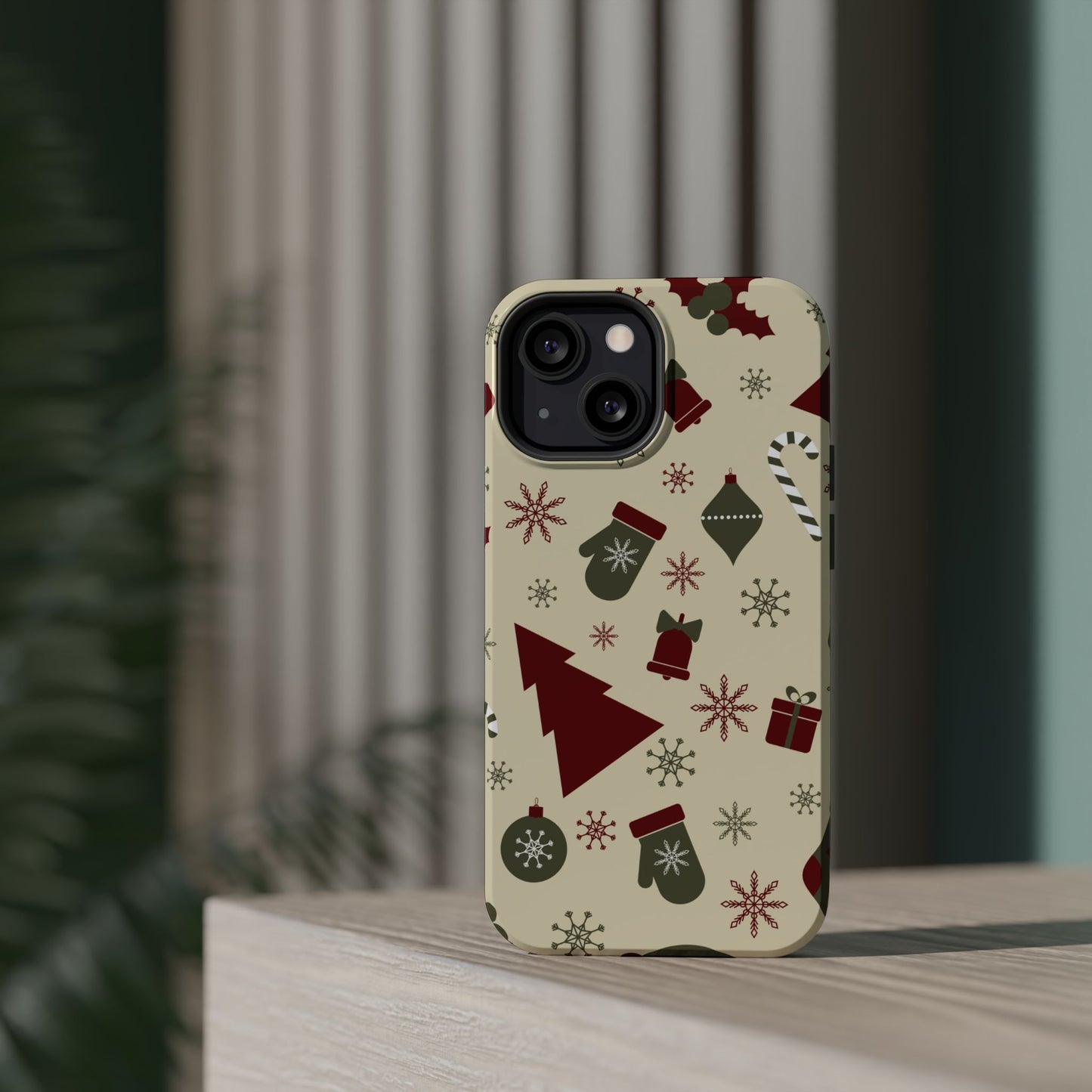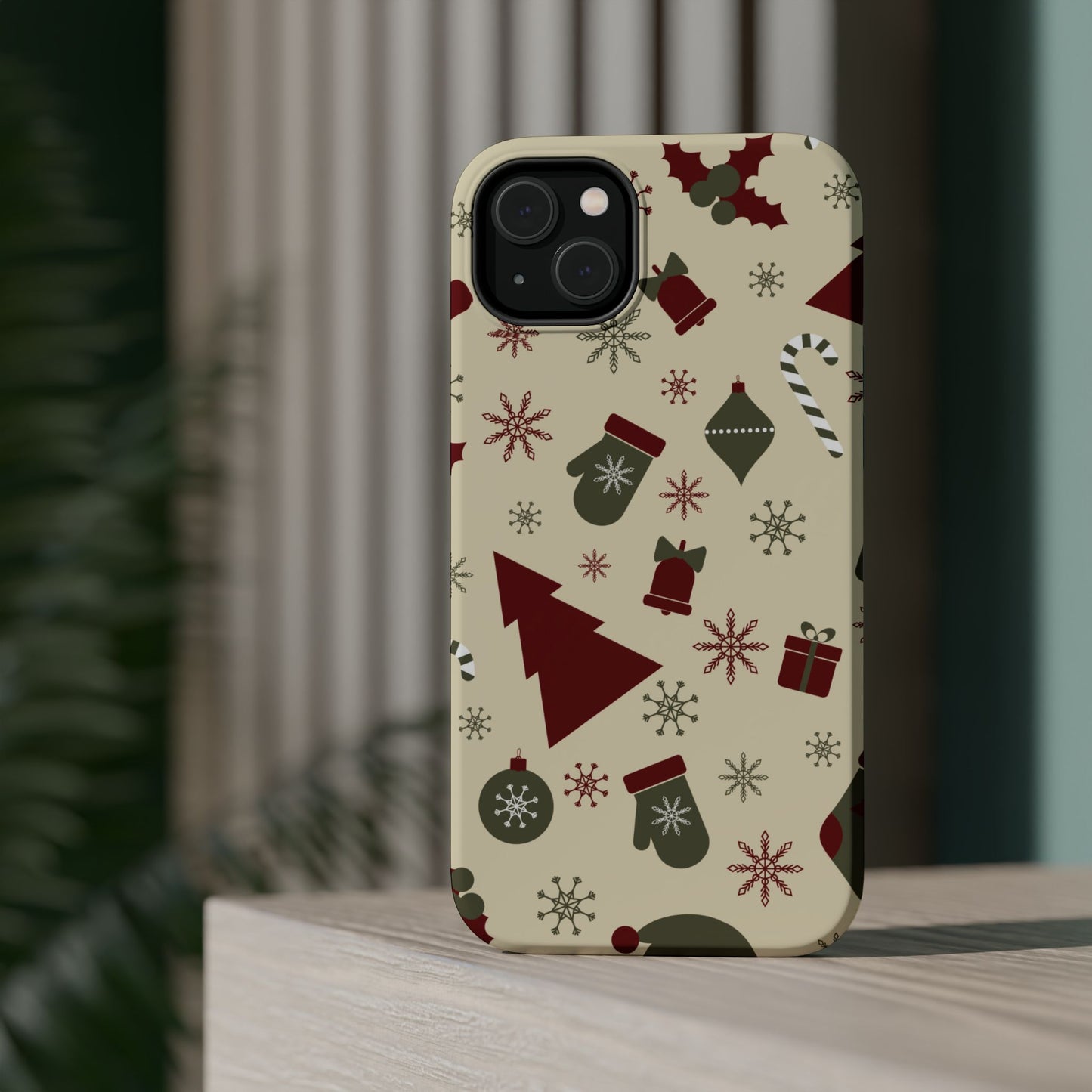 Embrace the spirit of the season with our Vintage Holiday Cheer MagSafe iPhone Case! This charming design showcases festive icons in classic red, green, and cream tones, including snowflakes, Christmas trees, candy canes, and gift boxes, all set on a warm, beige background. Perfect for adding a touch of retro holiday style to your phone, this case brings nostalgic holiday vibes wherever you go. Crafted from durable materials, it provides reliable protection against everyday bumps and scratches while keeping your phone lightweight and sleek. Celebrate the holidays in style with this festive, functional case!